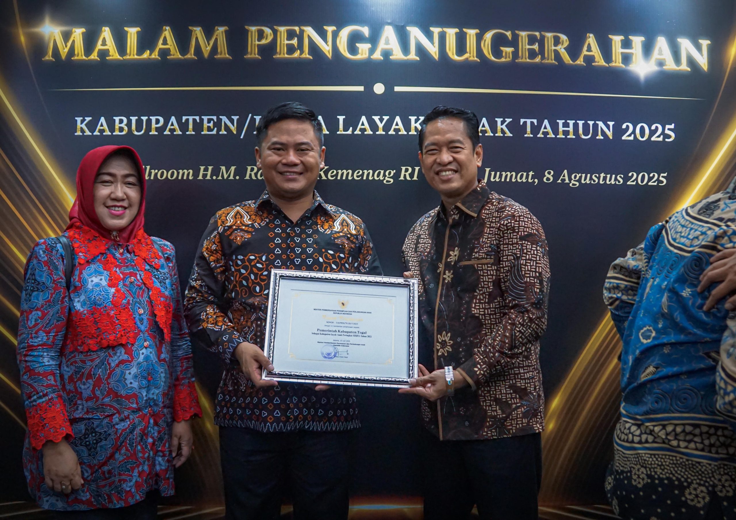 SLAWI, smpantura – Kabupaten Tegal mempertahankan prestasinya sebagai Kabupaten Layak Anak Kategori Nindya di tahun 2025. Penghargaan itu diberikan bersamaan dengan 355 Kabupaten/Kota dan 13 provinsi di Indonesia di Jakarta, Jumat (8/8/2025).