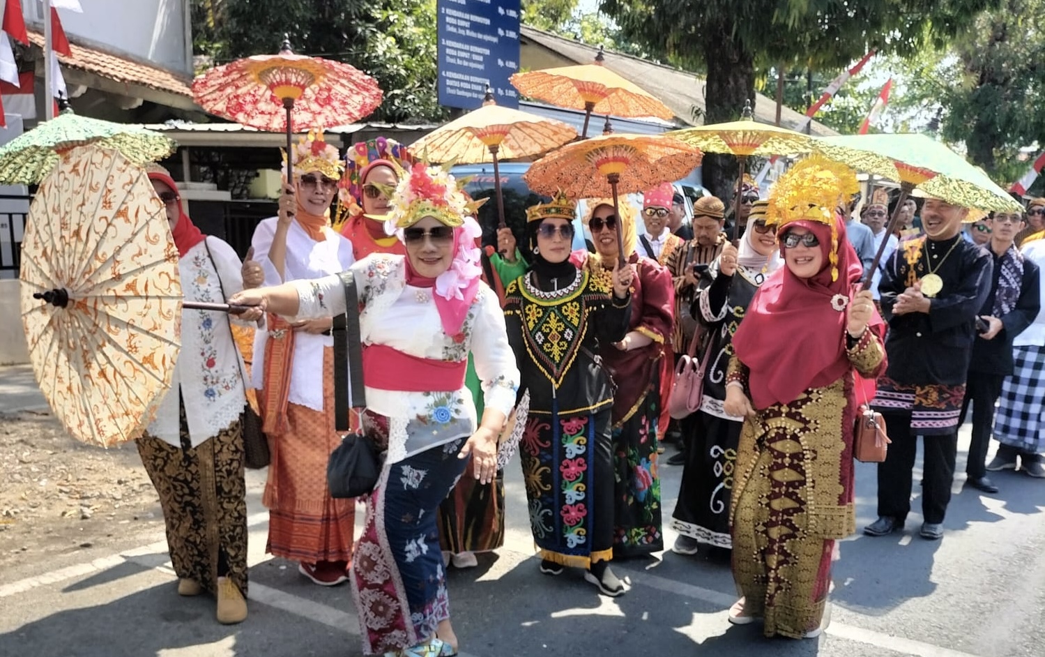 “Kami menampilkan budaya, seni pertunjukkan dan profesi serta menggunakan pakaian adat nusantara. Kami kenalkan kepada masyarakat akan kekayaan seni budaya Indonesia,” ujarnya.