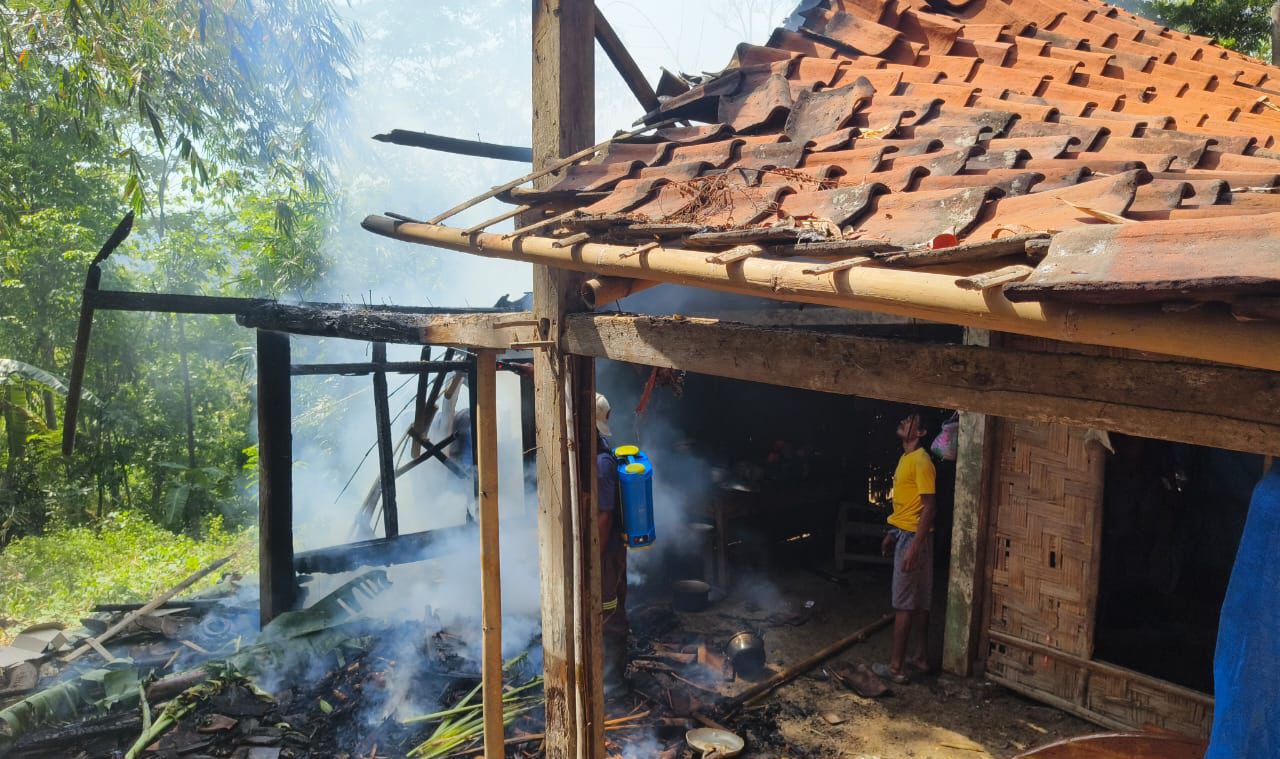 Api dengan cepat membakar dan menghanguskan bangunan rumah semi permanen beserta perabotan di dalamnya.