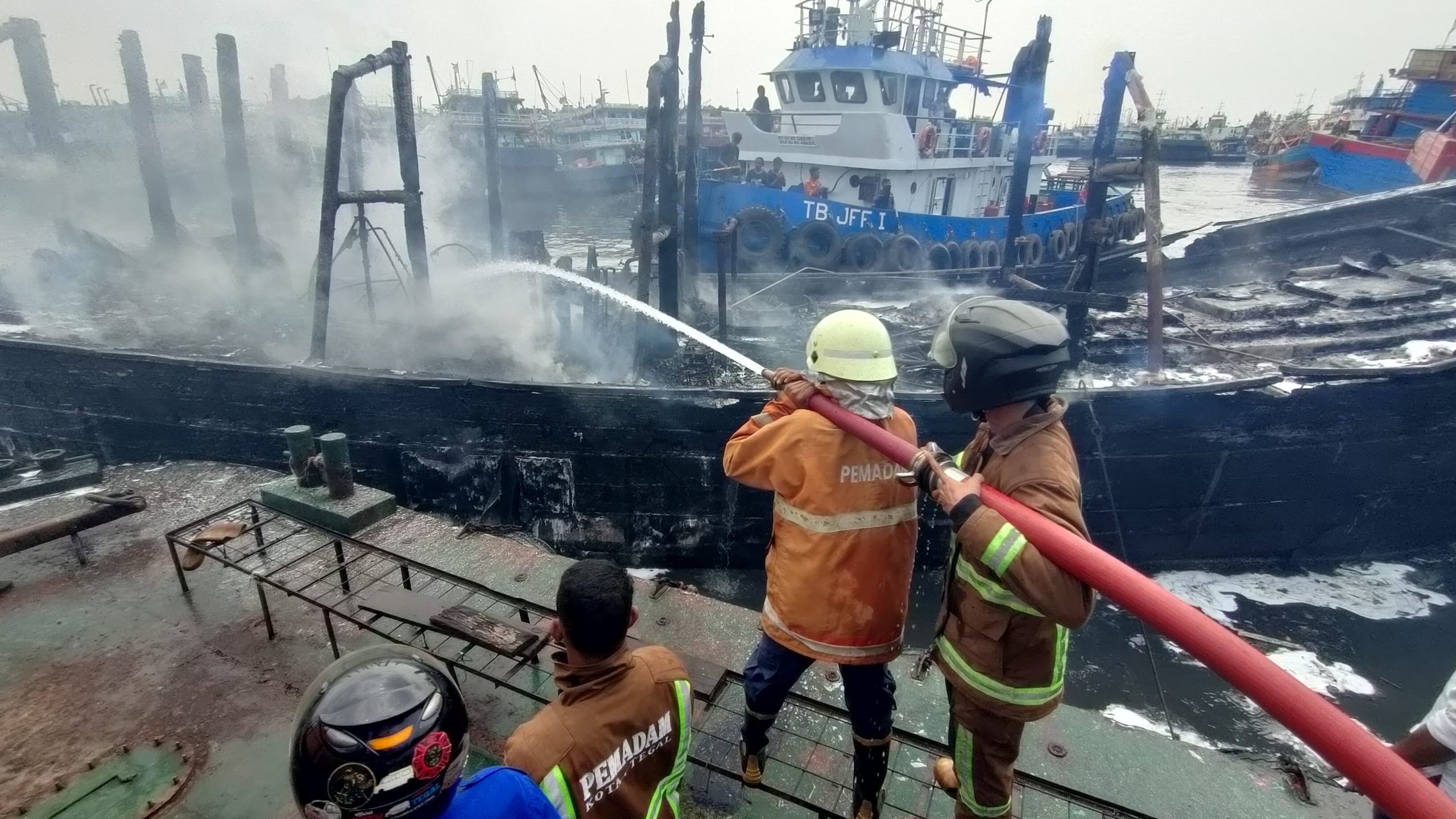 TEGAL, smpantura – Kobaran api yang melalap sebuah kapal di Pelabuhan Pelindo Tegal, Senin (14/7/2025) berhasil dijinakkan petugas pemadam kebakaran Kota Tegal.