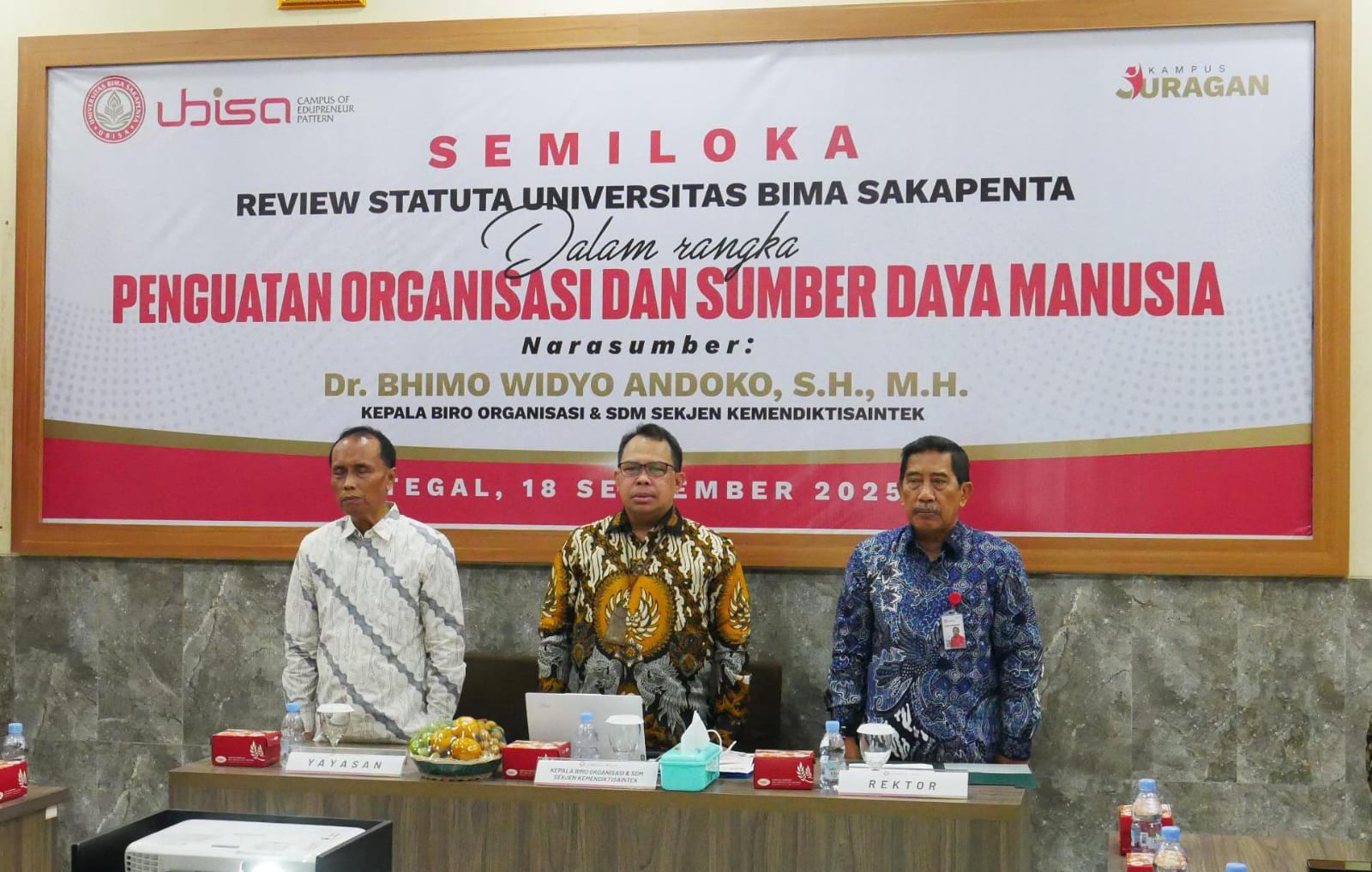 TEGAL, smpantura – Kepala Biro Organisasi dan Sumber Daya Manusia (OSDM) Kemendiktisaintek Dr Bhimo Widyo Andokon SH MH, mengapresiasi kemajuan yang dicapai Universitas Bima Sakapenta (Ubisa) Tegal. Meski tergolong perguruan tinggi baru, tapi dinilai baik dalam tata kelolanya.