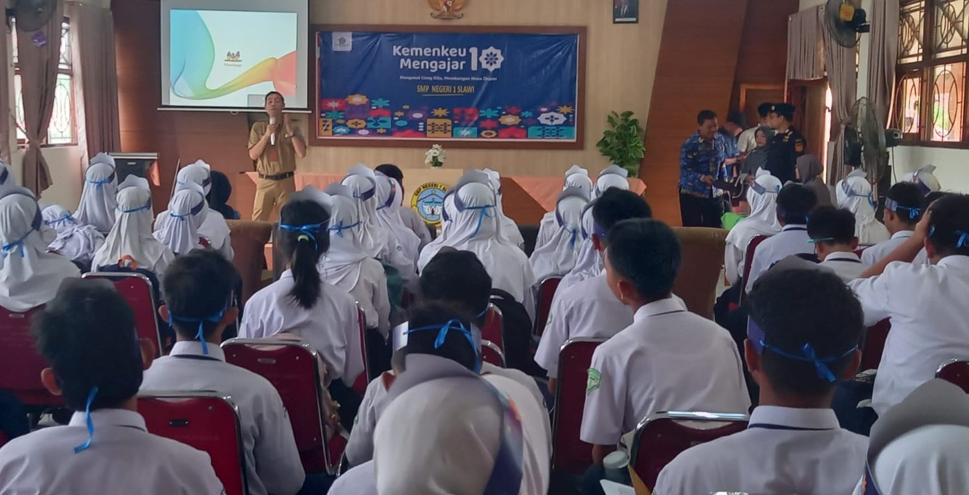 Salah satu sekolah yang dikunjungi Kemenkeu Mengajar 10 adalah SMP Negeri 1 Slawi, Kabupaten Tegal. Selama sehari, tim relawan Kemenkeu Mengajar 10 hadir untuk menanamkan semangat cinta negeri dan pengetahuan keuangan pada generasi muda.
