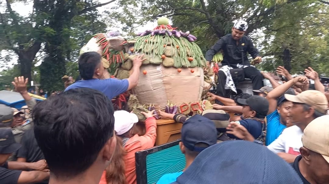 Seperti biasanya, warga antusias berebut hasil bumi. Mereka langsung berlomba mengambil sayuran, buah-buahan, aneka jajanan dan hasil perikanan yang ada di atas mobil hias.
