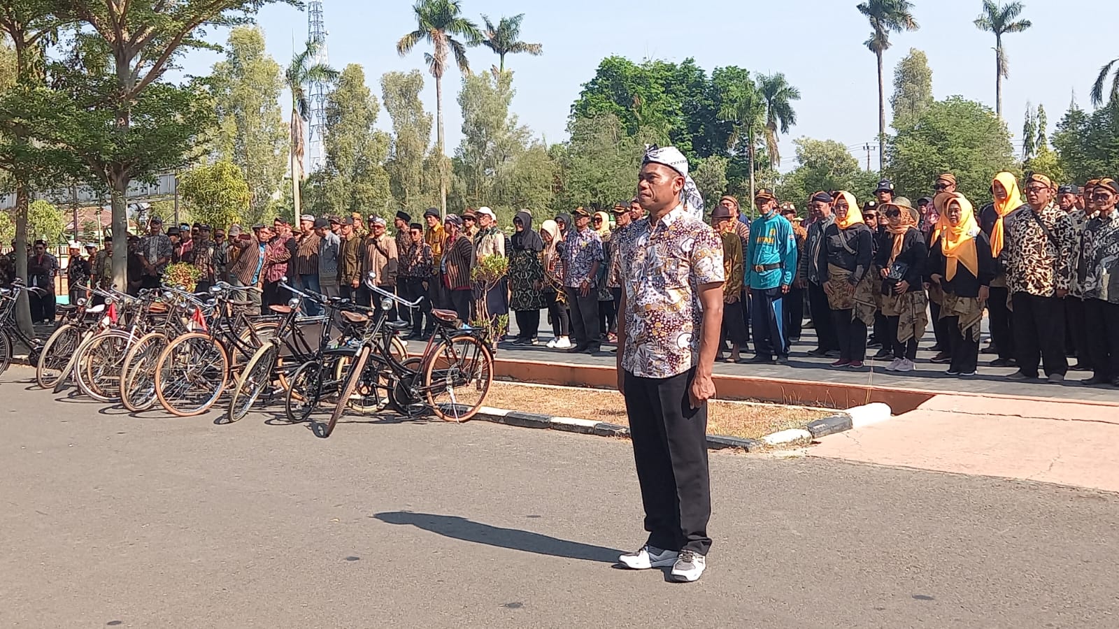 Mengenakan pakaian batik dan lurik, mereka mengikuti apel di halaman Pendapa Amagkurat, Pemda Kabupaten Tegal.