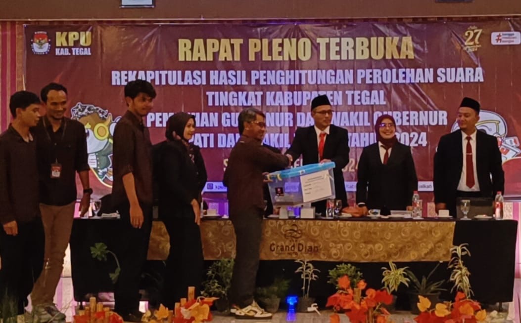 “Kami telah menetapkan peroleh suara dalam Pilkada Tegal 2024 di Hotel Grand Dian Slawi pada Rabu, 4 Desember 2024,” katanya.