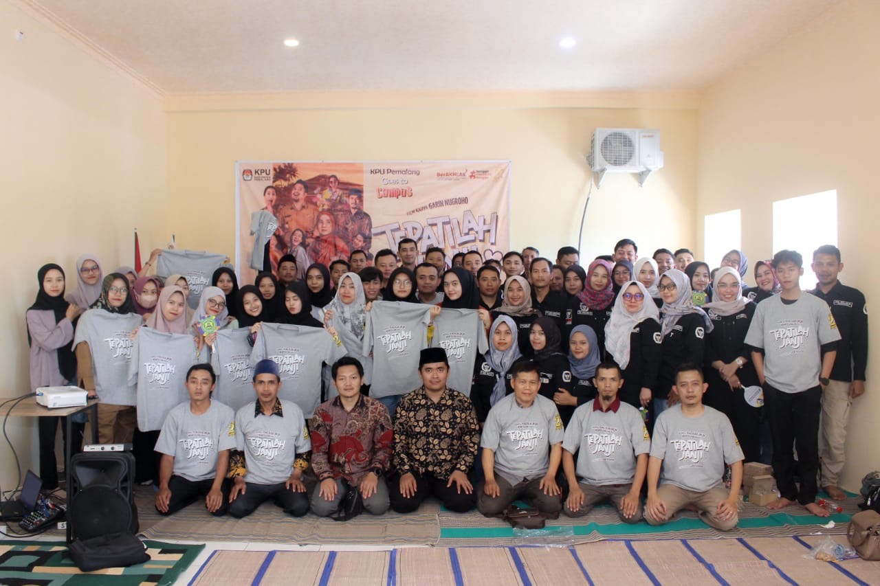 PEMALANG , smpantura – Komisi Pemilihan Umum (KPU) Kabupaten Pemalang menggelar acara nonton bareng film “Tapatilah Janji” di Kampus Stembi Pemalang. Kegiatan nobar ini merupakan bagian dari sosialisasi pendidikan pemilih di kalangan pemilih pemula.