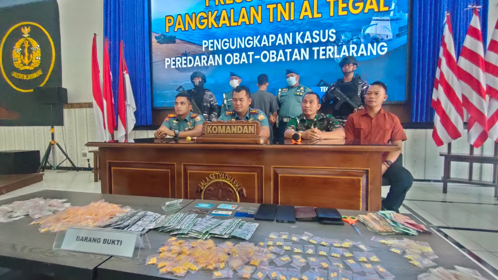 TEGAL, smpantura – Sebanyak 4.269 butir obat terlarang berhasil diamankan tim gabungan Pangkalan TNI Angkatan Laut (Lanal) Tegal, Kepolisian dan BNN, dari tangan pengedar jaringan Aceh saat melakukan transaksi di wilayah Kabupaten Pemalang, Senin (29/10/2024).