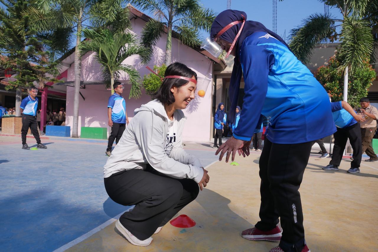 SLAWI, smpantura – Mahasiswi dari Jepang, Sawa Onishi terlihat bahagia saat mengikuti perlombaan dalam rangka perayaan HUT ke-80 Kemerdekaan RI di SMK Bhakti Praja (BP) Adiwerna, Kabupaten Tegal sejak Kamis-Jumat (14-16/8/2025). Sawa yang merupakan mahasiswi dari Meiji University itu tengah menjalani program Relawan Indonesia Experience (Indoex) di SMK tersebut.