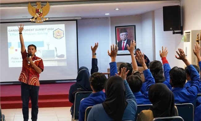 TEGAL, smpantura – Ratusan mahasiswa semester 4 dari seluruh prodi mengikuti workshop problem solving bagi mahasiswa, yang diselenggarakan Bagian Karir & Alumni Politeknik Harapan Bersama (Poltek Harber) di Aula Kampus Gedung C, Rabu (8/5/2024).
