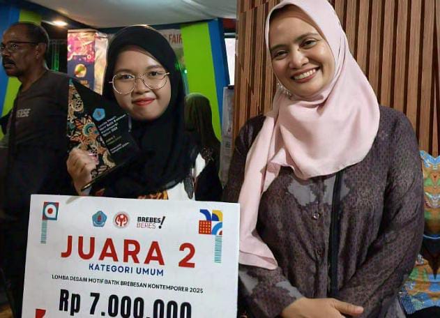 Mahasiswi Program Studi Akuntansi S1 tersebut, menyabet Juara 2 di ajang bertajuk ”Lomba Desain Batik Brebesan 2025”, yang puncaknya digelar di GOR Sasana Adhi Karsa Brebes, Jumat malam (22/8).