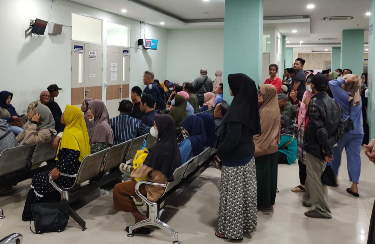 Membludak, Pasien Rawat Jalan RSUD Dr Soeselo Slawi Terpaksa Duduk di Lantai