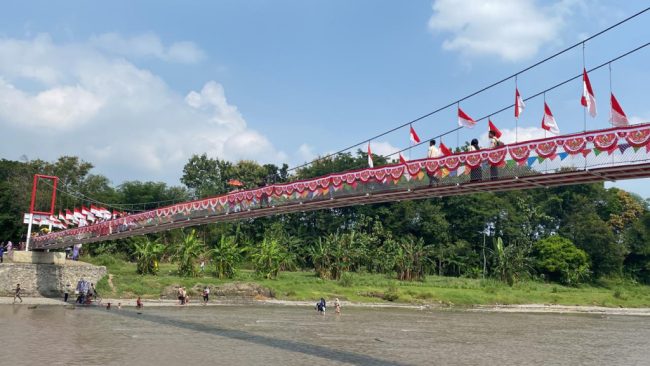 BREBES, smpantura– Pangdam IV/Diponegoro, Mayjen TNI Deddy Suryadi,baru baru ini meresmikan tiga jembatan gantung merah putih di Kabupaten Brebes.
