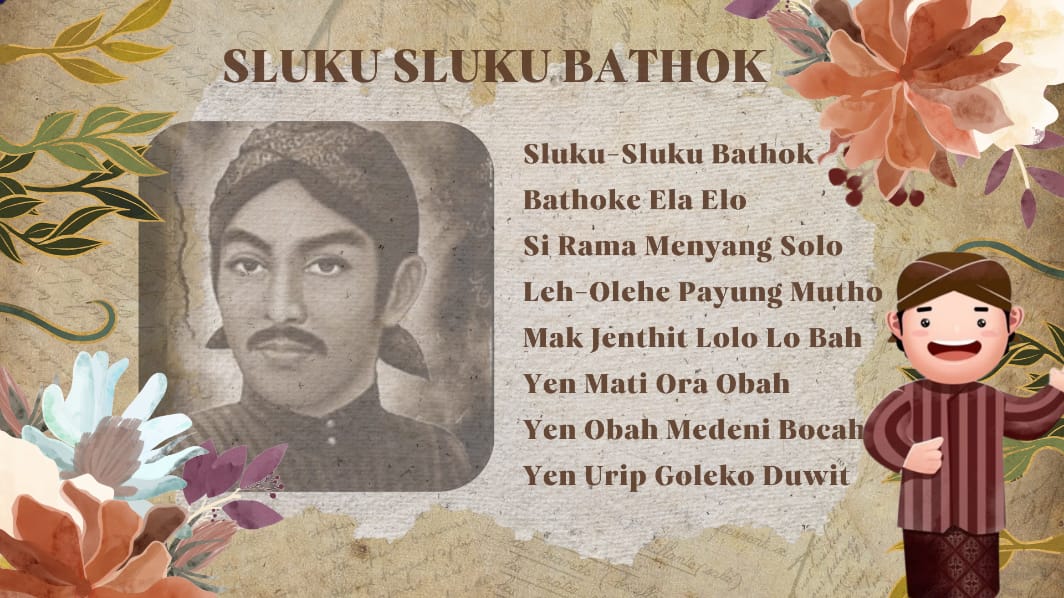 Lagu sluku-sluku bathok adalah salah satu lagu daerah yang berasal dari jawa tengah yang liriknya berbahasa Jawa. Salah satu wali songo yang berpengaruh dalam membangun budaya Jawa adalah Sunan Kalijaga, yang membuat lagu dolanan ini sebagai alat dakwah untuk menyebarkan Islam. Menggelengkan kepala ke kanan dan ke kiri saat memainkan lagu ini. Selain sering memutar lagu tersebut, orang tua saya juga pernah berkata bahwa arti dari lagu sluku-sluku bathok ini sebetulnya memberikan pesan moral tentang pentingnya memanfaatkan waktu untuk berdzikir dan mengingat Tuhan. Oleh sebab itu, siswa dapat diajarkan nilai-nilai agama dengan cara yang menyenangkan melalui liriknya yang sederhana dan mudah diingat.
