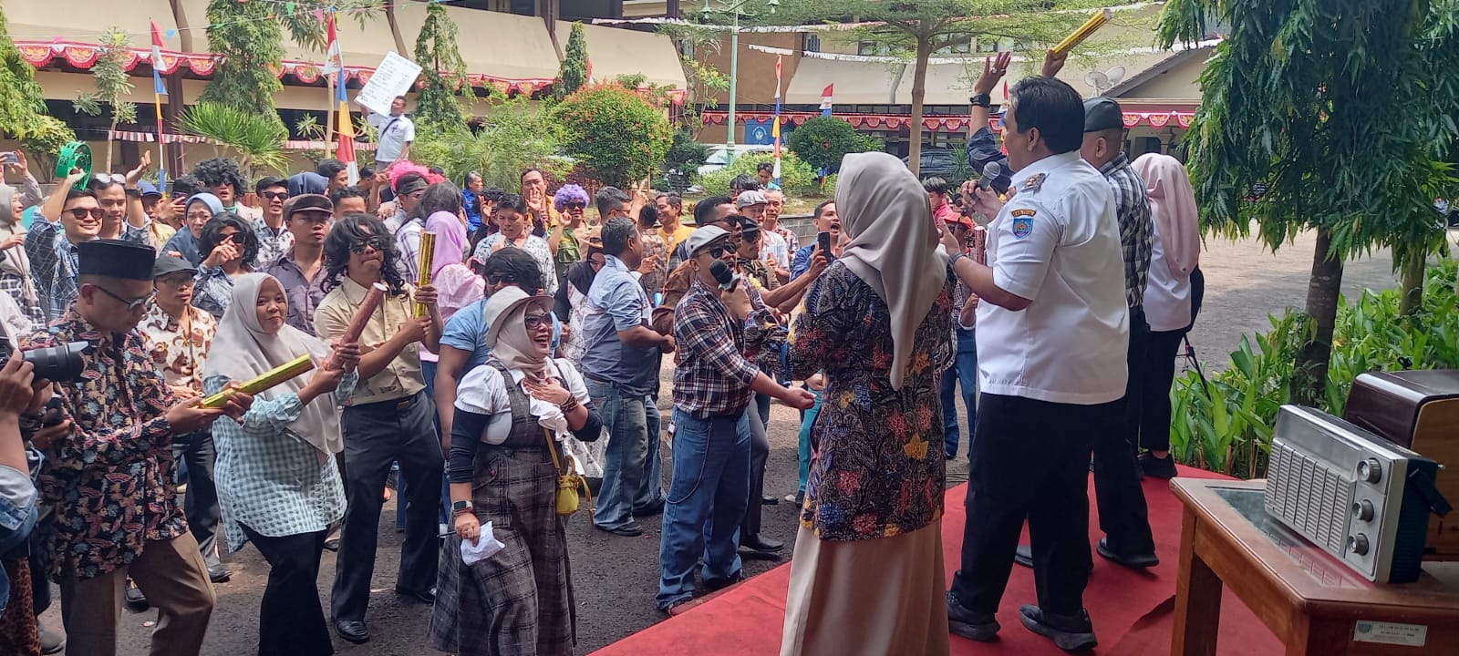 Peserta lomba karaoke ini menunjukkan penampilan terbaiknya dengan menyanyikan lagu-lagu ikonik seperti “Judul- Judulan” dari PMR, ” Surat Cintaku” dari Vina Panduwinata, ” Terajana” dari Rhoma Irama, ” Bukit Berbunga” dari Uci Bing Slamet.