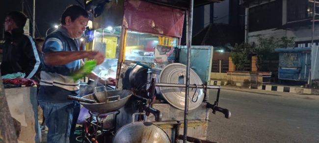 BREBES, smpantura – Melihat lokasi berjualannya, memang tidak jauh berbeda dengan para penjual mie tek tek dengan gerobag. Namun siapa sangka, mie tek-tek yang mangkal di depan Kantor BRI Brebes, jalan Sultan Agung Brebes ini, ternyata mie tek tek legendari yang ada di Kota Bawang.