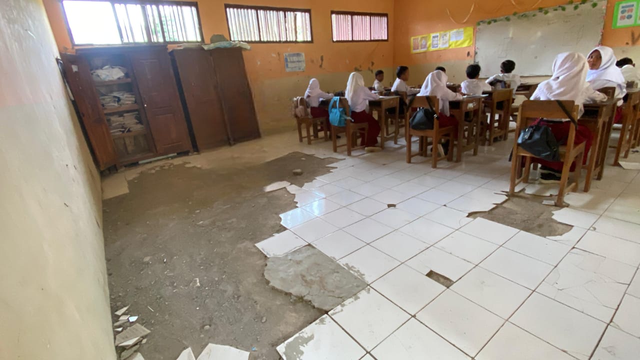 Saat ini, hampir seluruh ruang kelas mengalami kerusakan. Dari total ruang yang tersedia, empat di antaranya berada dalam kondisi paling parah. Demi keamanan siswa, pihaknya terpaksa menggabungkan beberapa kelas dalam satu ruangan. “Dalam pembelajaran tentu tidak efektif. Tapi mau bagaimana lagi?” katanya.