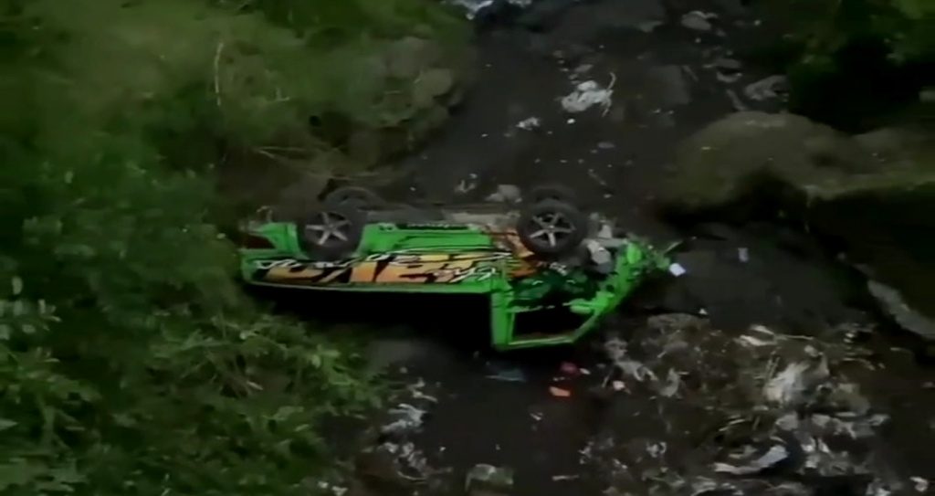 Saat melintasi jalur menurun dan berkelok, kendaraan hilang kendali dan terperosok ke jurang.