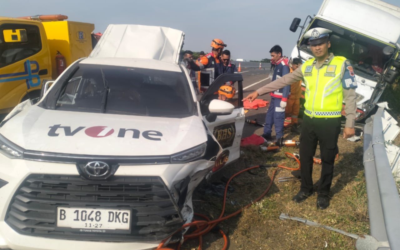 PEMALANG, smpantura – Mobil yang ditumpangi kru TVone mengalami kecelakaan di jalan Tol Pemalang, Kamis (31/10/2024) pagi. Mobil Toyota Avanza putih B-1048-DKG berpenumpang lima orang itu kecelakaan di KM KM 315 jalur A pada sekitar pukul 06.30 WIB. Akibat insiden ini, tiga penumpang dilaporkan tewas.