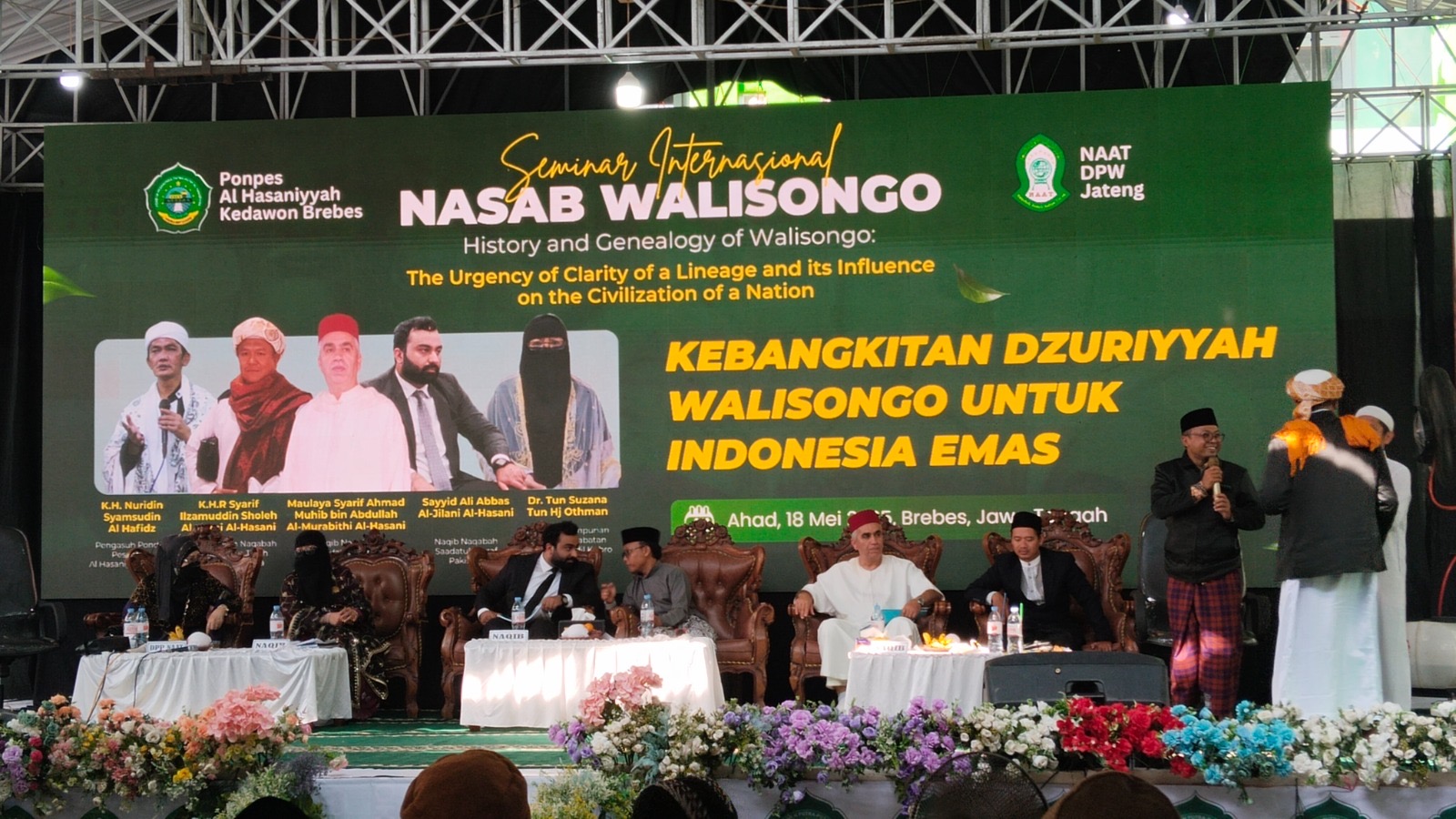 BREBES, smpantura – Naqobah Ansab Auliya Tis’ah (NAAT), yang merupakan lembaga resmi pencatat nasab atau keturunan Wali Songo, membedah tuntas garis keturunan Wali Songo, dalam sebuah seminar Internasional yang digelar di Ponpes Al-Hasaniyyah Kedawon, Kecamatan Larangan, Kabupaten Brebes (18/5/2025).