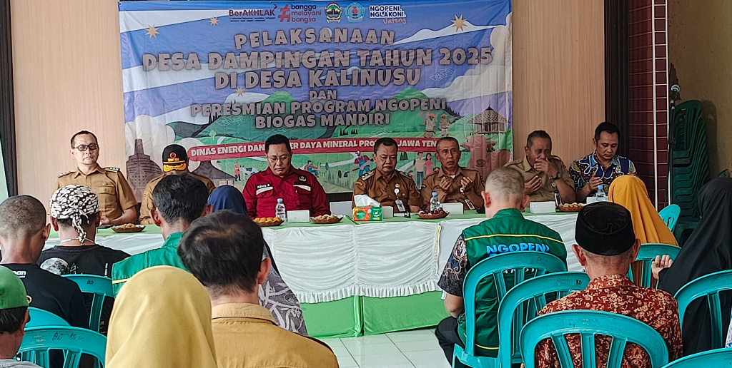 Program inovatif ini hadir melalui Ngopeni Biogas Mandiri, yang resmi diluncurkan bersamaan dengan kegiatan Desa Dampingan 2025 oleh Dinas Energi dan Sumber Daya Mineral (ESDM) Provinsi Jawa Tengah di Aula Kantor Desa Kalinusu, Selasa (30/9/2025).