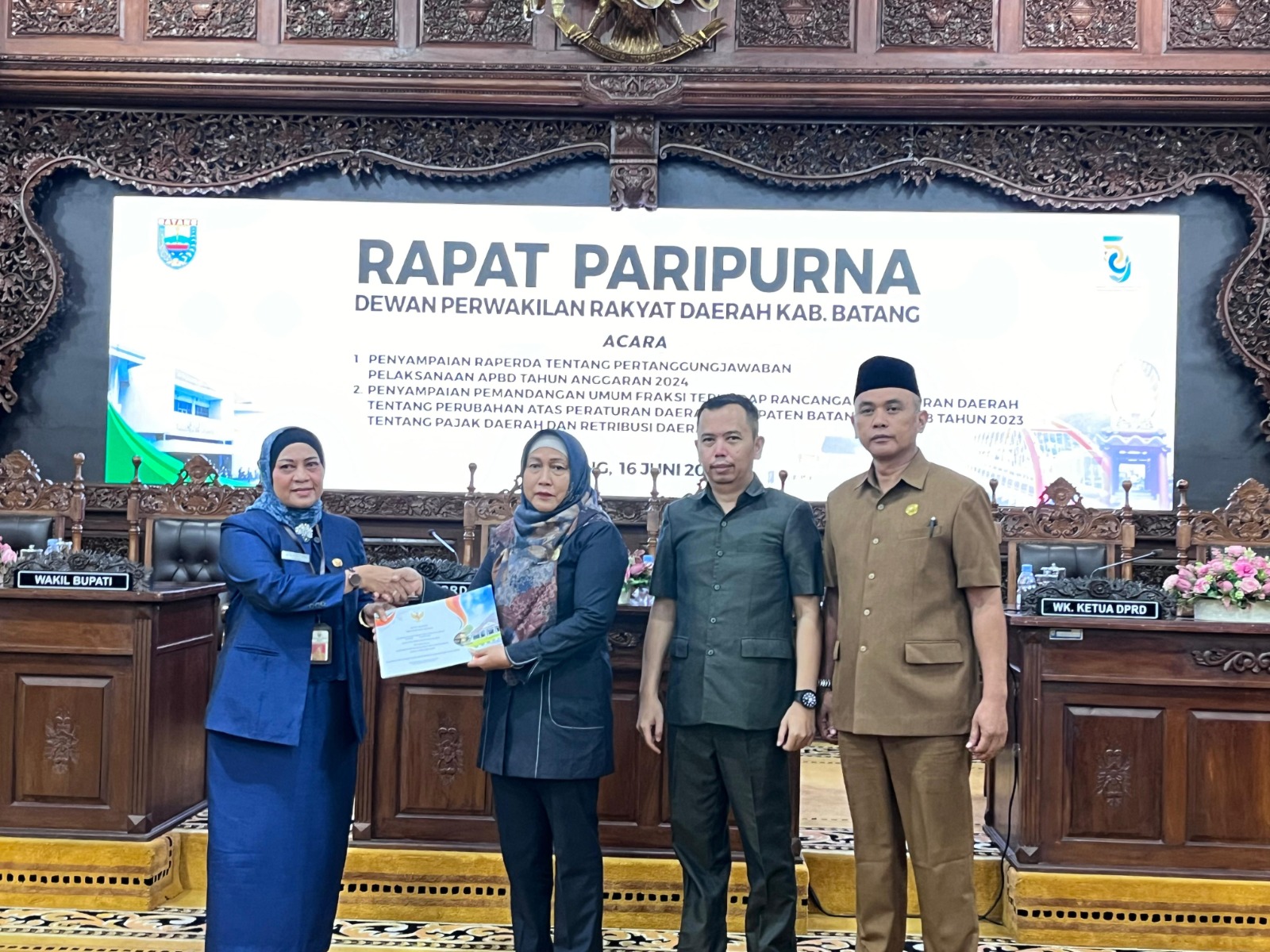 Hal tersebut disampaikan dalam Rapat Paripurna DPRD terkait Pemandangan Umum Fraksi Terhadap Perubahan Peraturan Daerah tentang Perubahan Atas Peraturan Daerah Kabupaten Batang No 8 Tahun 2023 tentang Pajak Daerah dan Retribusi Daerah dan Penyampaian Raperda tentang Pertanggung jawaban Pelaksanaan APBD Tahun 2024 dan , Senin (16/6).