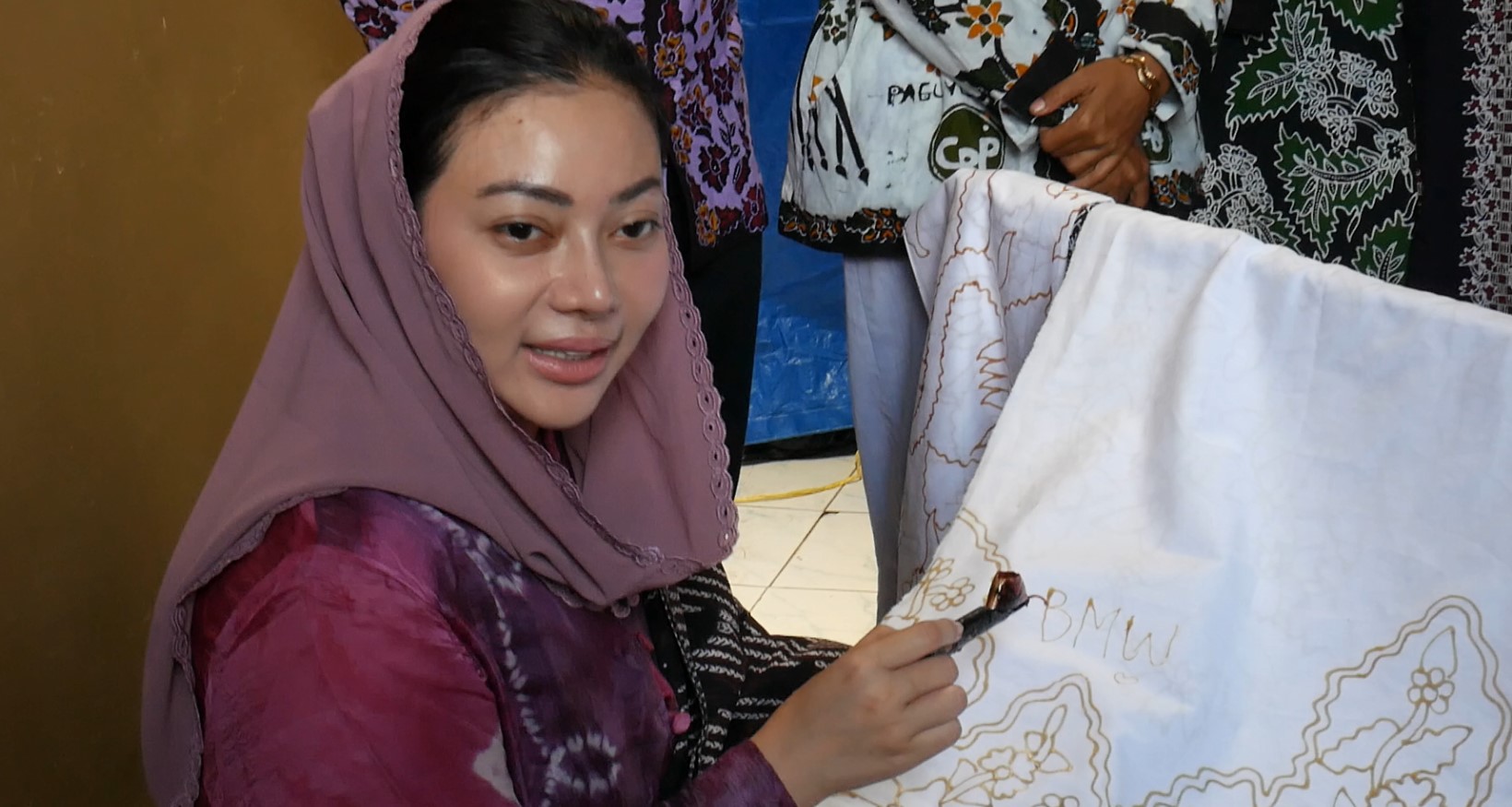 Selain berdialog dengan perajin, Paramitha juga menyempatkan diri untuk mencoba membantik.