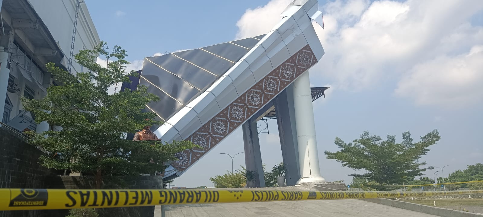 BREBES, smpantura – Aktivitas para Aparatur Sipil Negara (ASN) di lingkungan Kantor Pemerintahan Terpadu (KPT) Brebes tetap normal, paska insiden ambruk teras kantor tersebut, Senin 22 September 2025. Sementara di titip teras KPT Brebes yang ambruk, masih terpasang garis polisi.