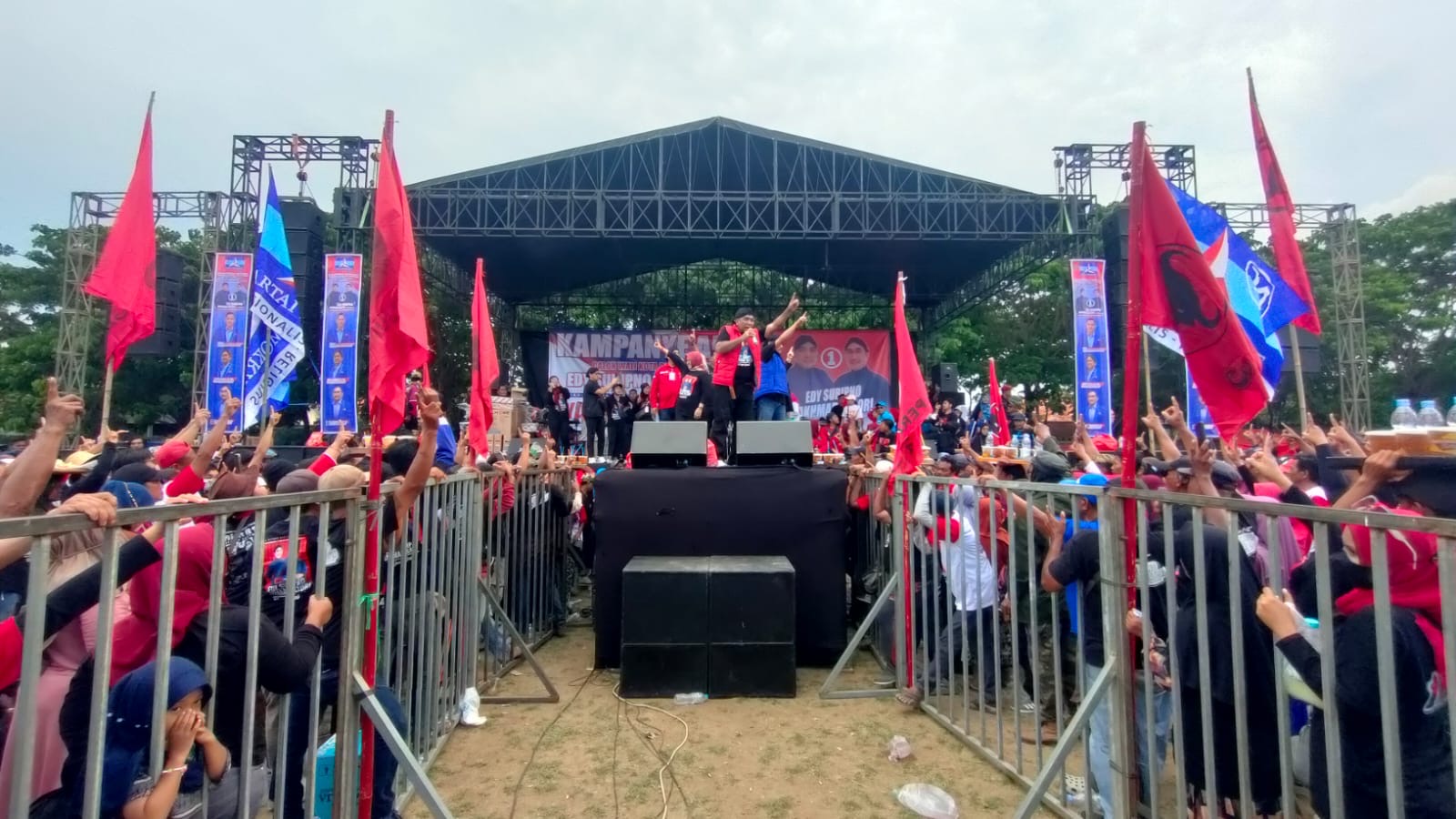 “Hari ini yang hadir di sini adalah seluruh tim pemenangan dan kita tidak melibatkan masyarakat lebih luas. Kalau pasukannya dibawa semua lapangannya ora nyandak (tidak cukup) dan ora muat,” ucap Uyip dalam orasinya.