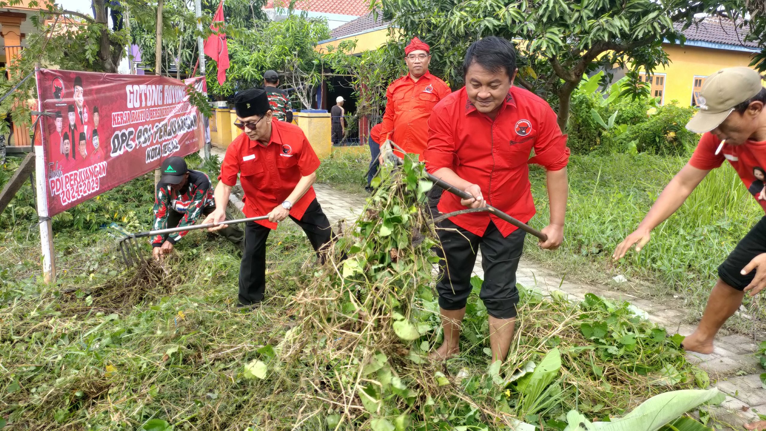 Dalam kegiatan tersebut, warga bersama kader PDI Perjuangan turun langsung ke lapangan membawa peralatan masing-masing.