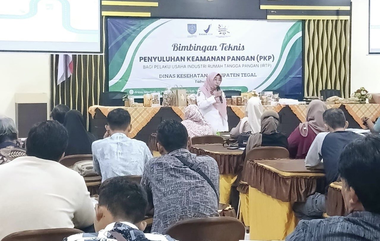 SLAWI, smpantura – Pelaku usaha pemegang Industri Rumah Tangga Pangan (IRTP) di Kabupaten Tegal, wajib mengikuti Bimbingan Teknis (Bimtek) Penyuluhan Keamanan Pangan (PKP). Pasalnya, Bimtek PKP merupakan salah satu syarat agar bisa memenuhi ketentuan aturan yang berlaku dengan nilai minimal 60 poin.