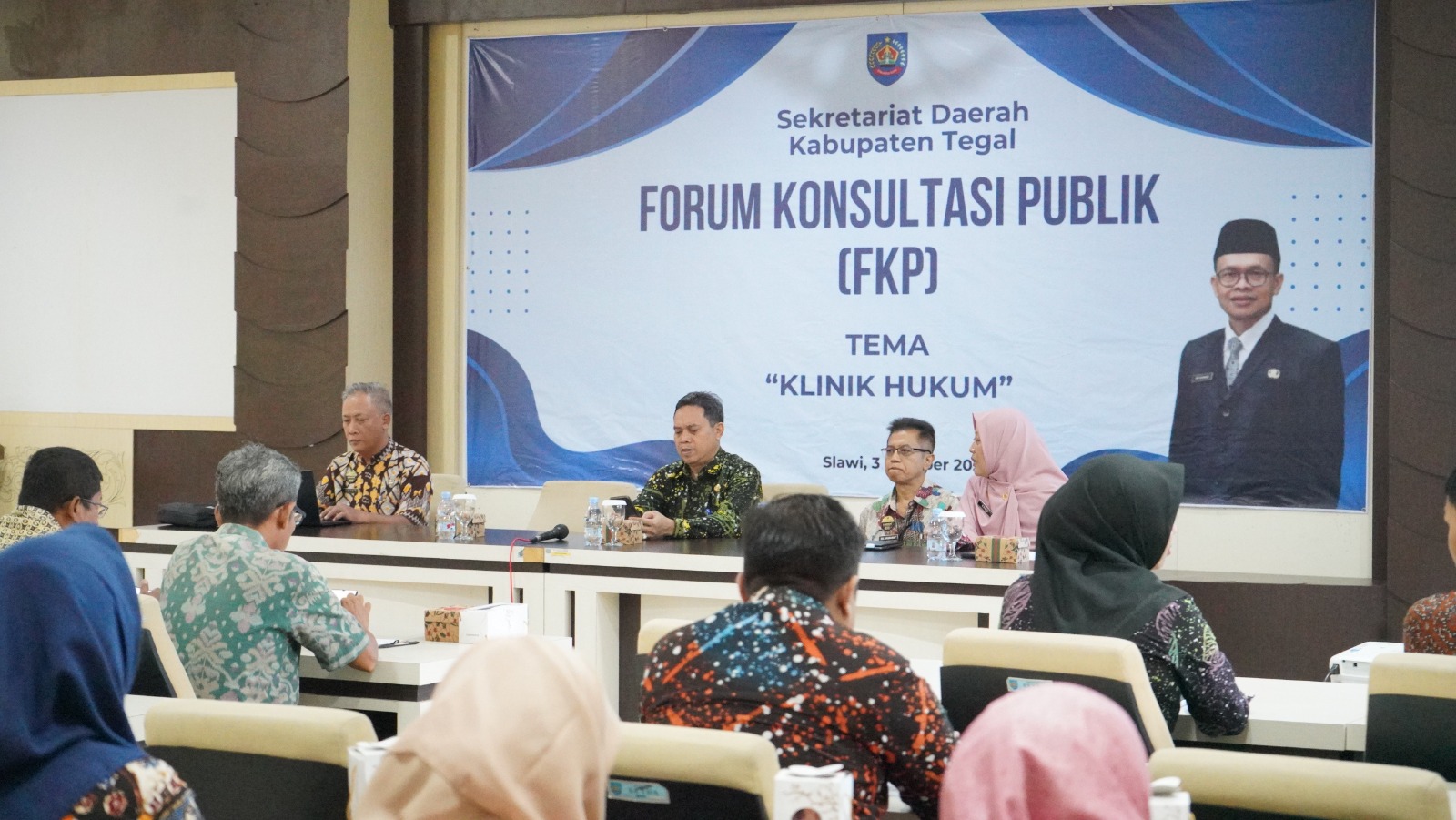 “Kami (Pemkab Tegal) berkomitmen menghadirkan keadilan yang bisa diakses semua lapisan masyarakat, termasuk warga miskin. Sehingga melalui layanan bantuan hukum ini kita ingin pastikan tidak ada warga yang terpinggirkan dari hak-haknya dalam memperoleh keadilan dan pembelaan di depan hukum,” ucap Joko pada acara Forum Konsultasi Publik (FKP) di Ruang Rapat Gedung C Kantor Sekretariat Daerah (Setda) Kabupaten Tegal, Jumat (3/10/2025).