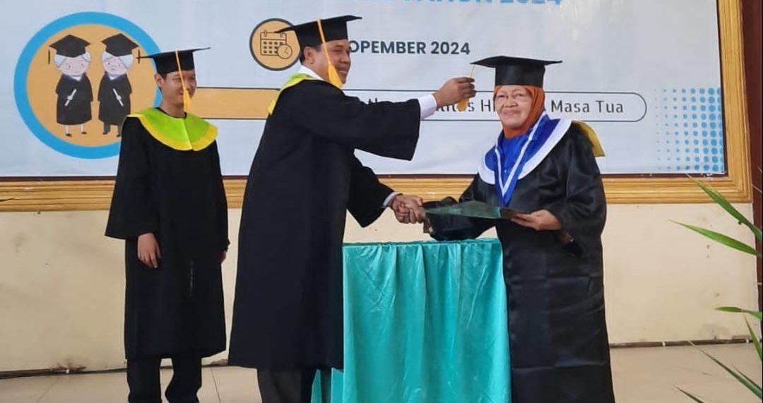 SLAWI, smpantura – Pemerintah Kabupaten Tegal menggelar wisuda bagi 235 lansia yang lulus sekolah lansia di Gedung Yaumi Centre di Jalan Moh Yamin, Kudaile, Slawi, Slawi Kabupaten Tegal, Kamis (14/11/2024).
