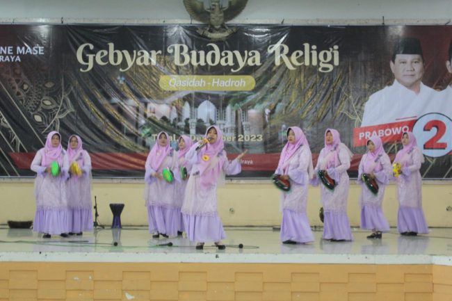 SLAWI, smpantura – Berbagai cara dilakukan para pendukung Capres dan Cawaspres untuk merayu para pemilih. Salah satu, Relawan Bolone Mase Tegal Raya mengadakan serangkaian kegiatan pertunjukan seni tradisi yang bertajuk Gebyar Budaya Religi.