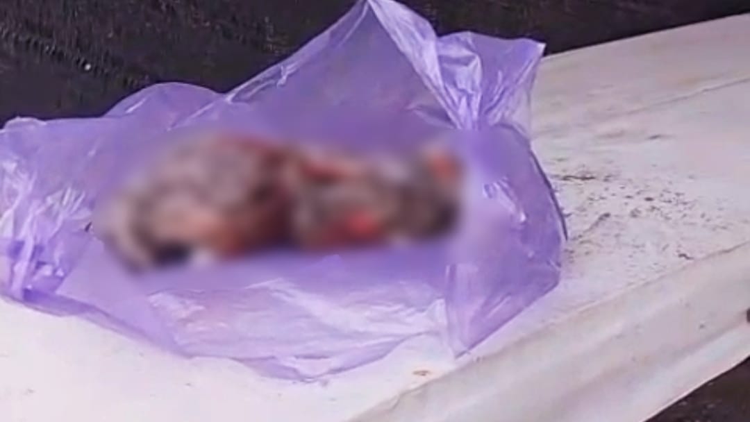 Dalam video tersebut, terlihat jasad bayi malang yang terbungkus dalam kantong plastik kresek berwarna ungu transparan.