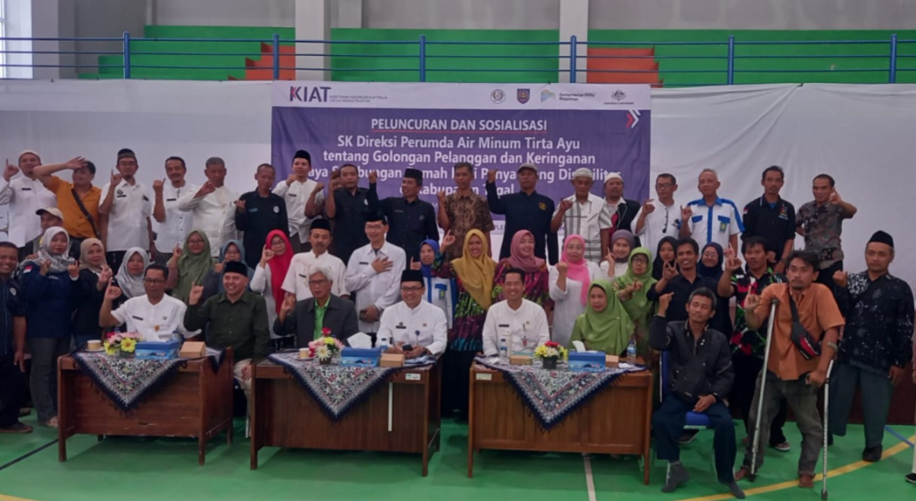“Dikeluarkannya SK Perumda Air Minum Tirta Ayu Kabupaten Tegal menjadi bagian dari fasilitasi pemerintah daerah kepada penyandang disabilitas untuk mempermudah dan meringankan akses terhadap air bersih. Diharapkan dengan fasilitasi ini penyandang disabilitas mendapatkan kemudahan dalam akses air bersih yang layak”, terangnya.