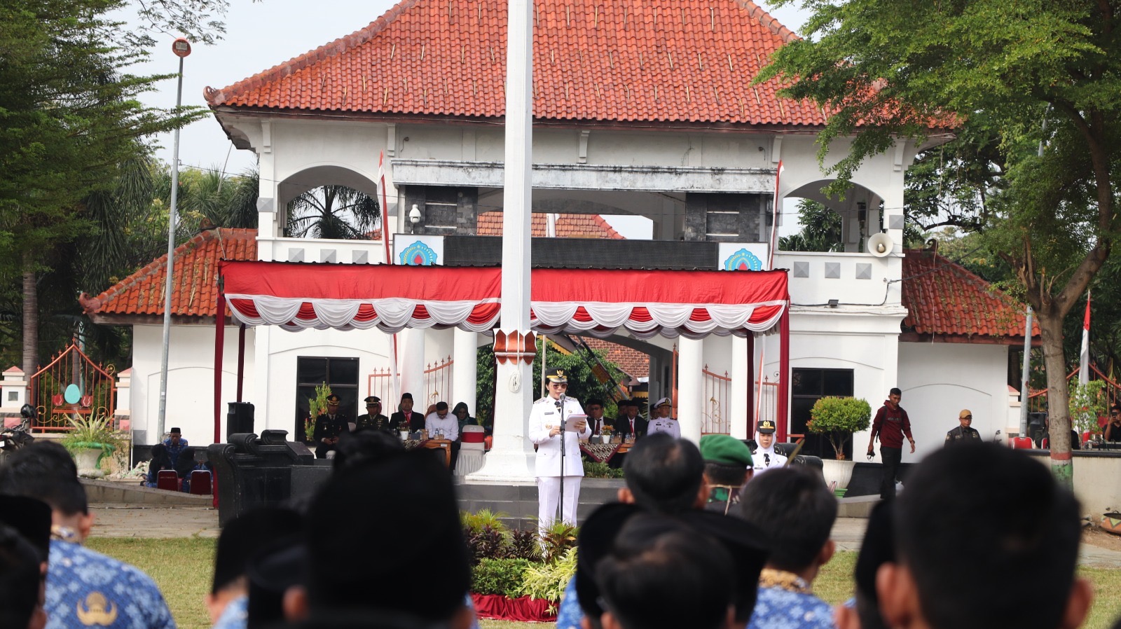 Bupati Brebes membacakan Pidato Kepala Badan Pembinaan Ideologi Pancasila Republik Indonesia Yudian Wahyudi, upacara berlangsung di Alun-alun Brebes, Senin (2/6/2025).