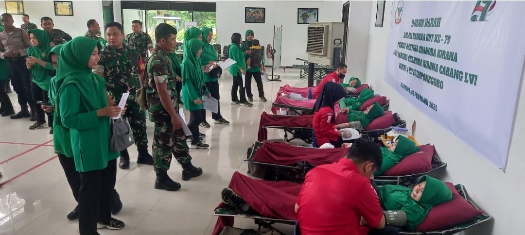 Wakil Ketua Persit KCK Cabang LVI PD IV/ Diponegoro Ari Nurniyati Ade Afri Verdaniex menuturkan, dalam rangka HUT le-79 Persit Kartika Chandra Kirana, selain donor darah, juga diadakan berbagai kegiatan.