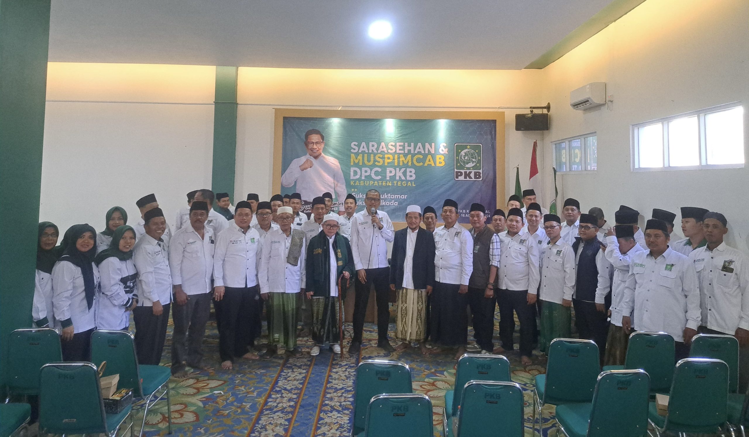 Kesepakatan itu disampaikan saat DPC PKB Kabupaten Tegal menggelar Musyawarah Pimpinan Cabang (Muspimcab), di Sekretariat DPC PKB setempat, Jumat (16/8/2024). Muspincab dihadiri Pengurus DPC PKB Kabupaten Tegal, Dewan Syuro dan Dewan Tanfid, seluruh ketua dan sekretaris PAC se Kabupaten Tegal serta Banom PKB yakni, jajaran pengurus Perempuan Bangsa dan Garda Bangsa.