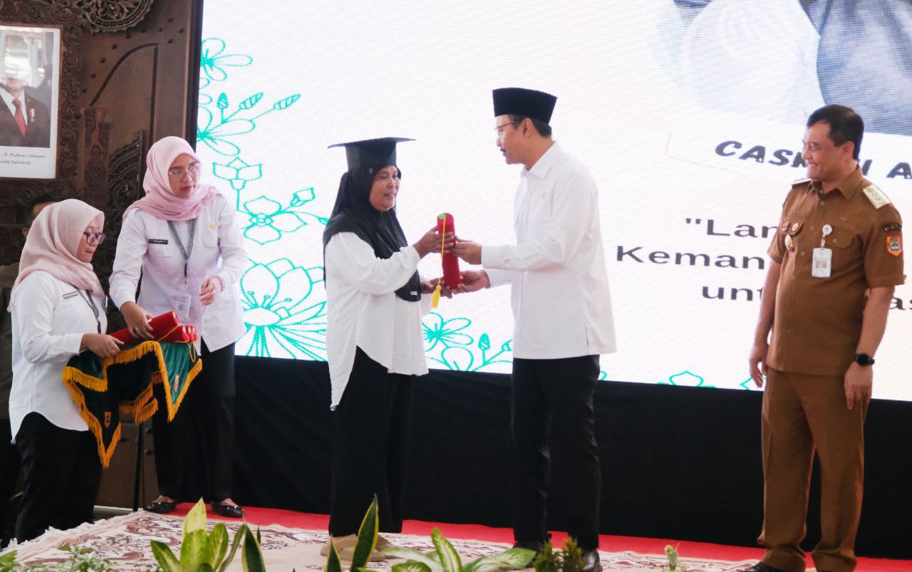 PEMALANG, smpantura – Program Keluarga Harapan (PKH) bukan bantuan permanen, melainkan jaringan sementara untuk mendorong kemandirian keluarga. Hal itu di sampaikan oleh Mensos RI Saifullah Yusuf dalam acara graduasi 1000 Keluarga Penerima Manfaat (KPM) PKH Kabupaten Pemalang tahun 2025 di Pendopo Kabupaten Pemalang, Senin (17/11).