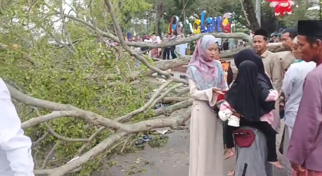 PEMALANG, smpantura – Sebuah pohon beringin di Alun-alun Pemalang mendadak roboh, dan menimpa 13 jemaah salat Idul Fitri (Ied), Senin (31/3/2025). Akibat insiden ini, 1 jemaah dilaporkan meninggal dunia, dan 12 orang lainnya kritis.