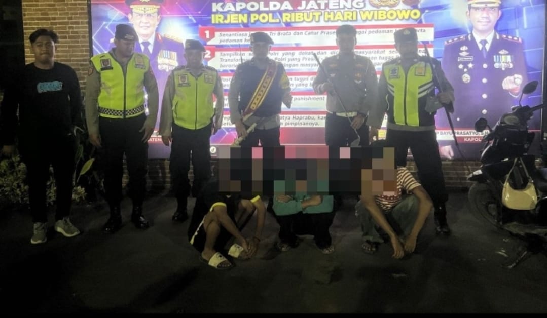 SLAWI, smpantura — Polisi menangkap tiga pria dan satu wanita pada saat melakukan patroli skala besar di wilayah Desa Pagedangan Kecamatan Adiwerna pada Minggu (23/11/2025) dini hari.
