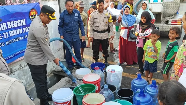 Kapolres Tegal AKBP Mochammad Sajarod Zakun, melalui Wakapolres Tegal Kompol Johan Valentino Nanuru menyampaikan, kekeringan di wilayah Kabupaten Tegal, membuat masyarakat kesulitan memperoleh air bersih untuk keperluan sehari-hari, seperti memasak dan minum hingga untuk kegiatan MCK.