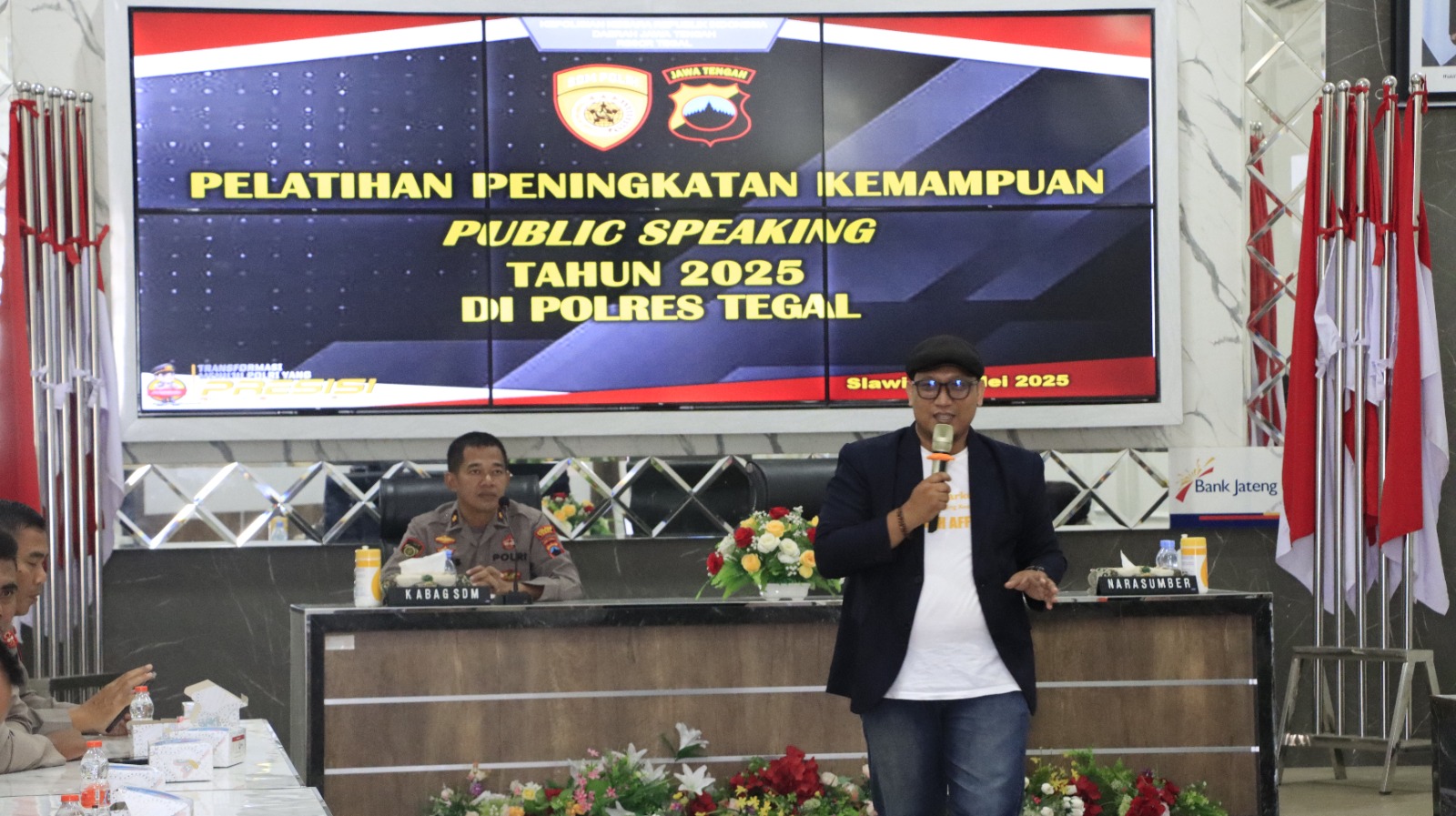 SLAWI, smpantura – Polres Tegal menyelenggarakan pelatihan peningkatan kemampuan etika pelayanan publik dan public speaking yang diikuti oleh 100 personel dari Polres dan Polsek jajaran Polres Tegal.