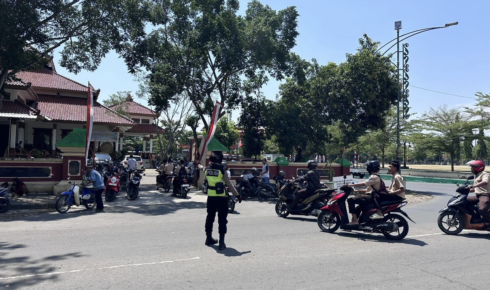 Polwan Polres Tegal Terjun Langsung Amankan Ibadah Shalat Jumat