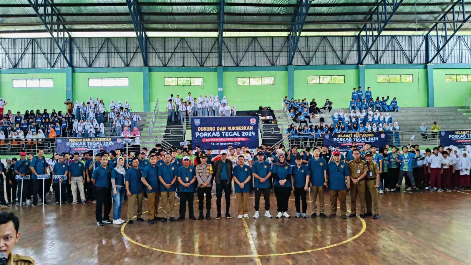 SLAWI, smpantura – Ribuan Atlet di Kabupaten Tegal mengikuti pembukaan Pekan Olahraga Kabupaten (Porkab) Tegal tahun 2024, dibuka secara resmi oleh Asisten II Sekda Tegal, Joko Kurnianto di GOR Indoor Trisanja Slawi, Kabupaten Tegal, Senin (16/12). Porkab yang bertemakan Raih Prestasi Menuju Porprov Jateng 2026 itu, diharapkan bisa mengangkat prestasi Kabupaten Tegal dalam Porprov Jateng naik dari posisi terbawah.