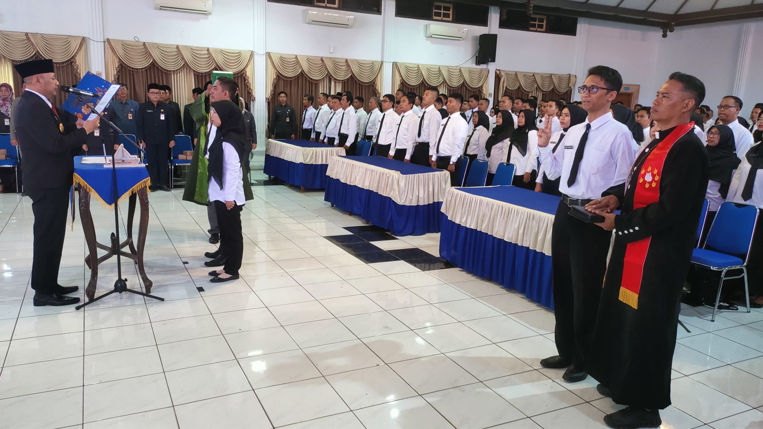 TEGAL, smpantura – Sebanyak 615 Pegawai Pemerintah dengan Perjanjian Kerja (PPPK) Pemerintah Kota Tegal Tahap I Formasi Tahun 2024 dilantik Wali Kota Tegal, Dedy Yon Supriyono di Ruang Adipura dan Pendopo Ki Gede Sebayu, Jum’at (16/5/2025).