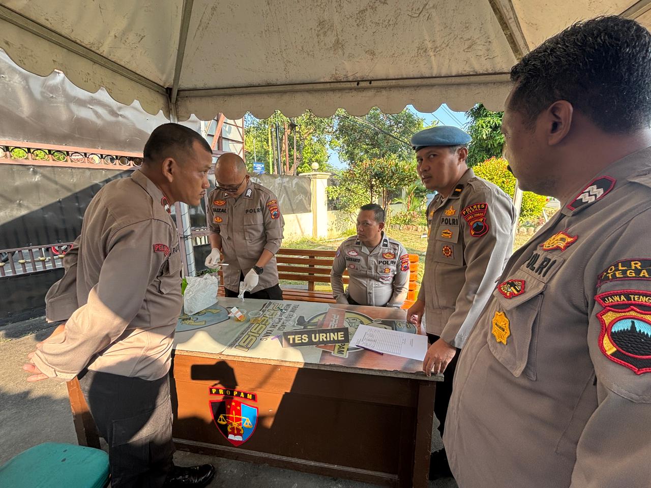 SLAWI, smpantura –Seksi Propam Polres Tegal melakukan pemeriksaan urine terhadap personel, Selasa (22/7/2025). Pemeriksaan secara mendadak ini dilakukan guna mencegah penyalahgunaan narkoba di lingkungan internal.