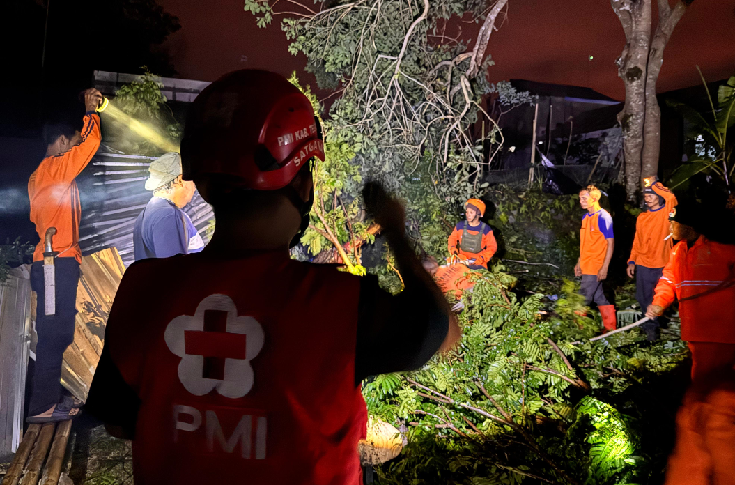 Sementara itu, angin kencang berhembus dengan durasi 30 menit juga menyebabkan kerusakan rumah dan pohon tumbang di beberapa desa di kecamatan Bojong.