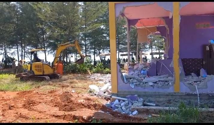 Puluhan Tempat Karaoke dan Kafe di Pantai Sigandu Dibongkar Paksa