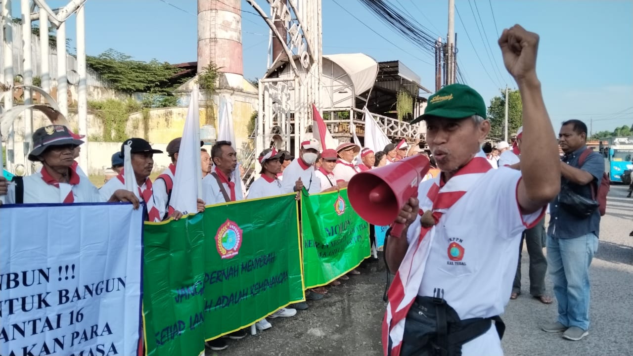 BREBES, smpantura – Puluhan purnakarya PTPN IX yang tergabung dalam Forum Komunikasi Purnakarya Perkebunan Nusantara (FKPPN) Jawa Tengah, melakukan aksi jalan kaki Brebes – Jakarta, untuk menemui Presiden Prabowo Subianto. Aksi jalan kaki ini dimulai dari depan Halaman Pabrik Gula (PG) Jatibarang, Kabupaten Brebes, Minggu (29/6).